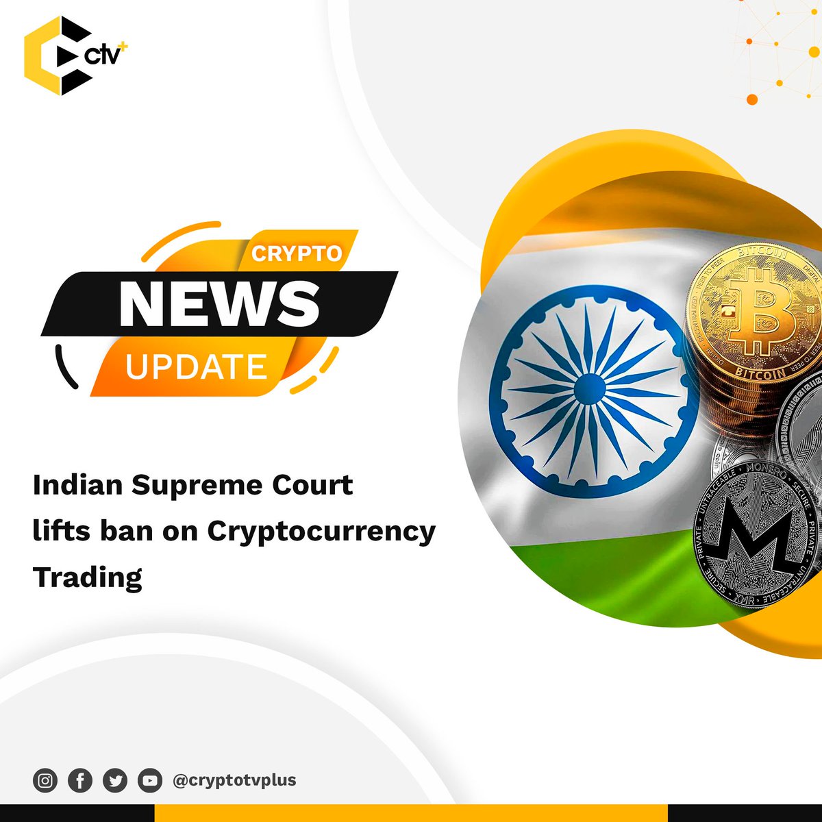 India's supreme court lifts ban on banks facilitating cryptocurrency trade.